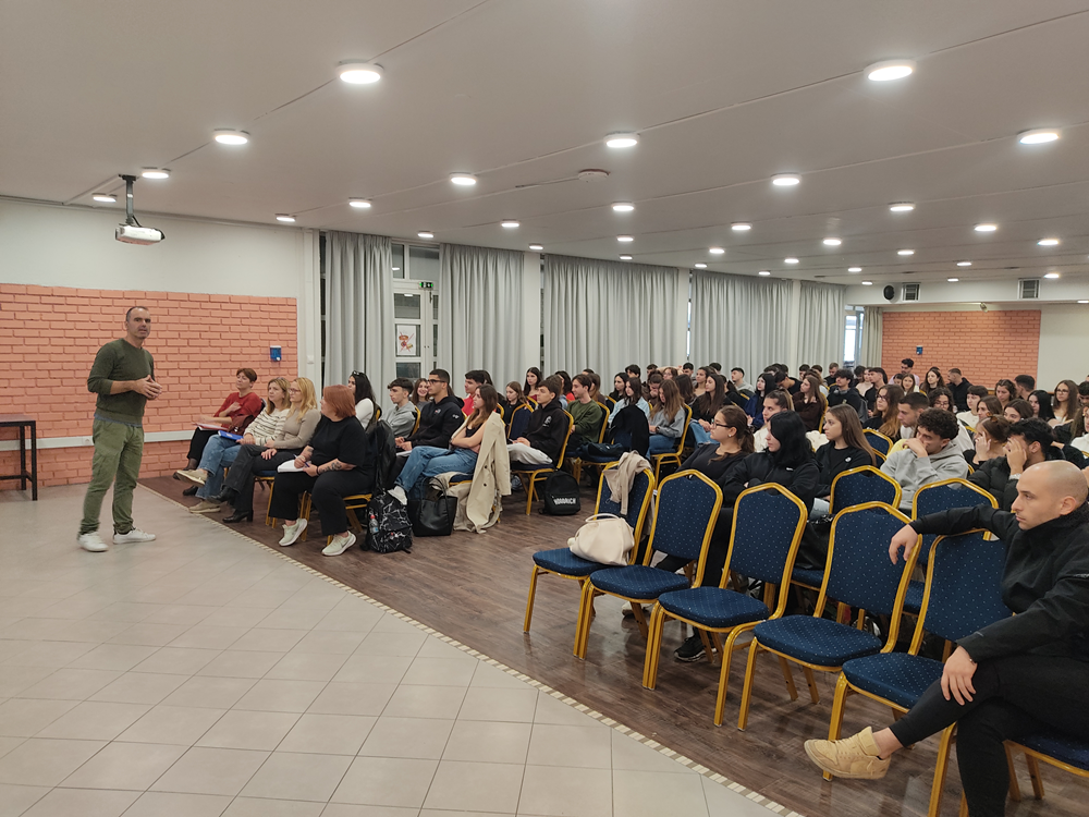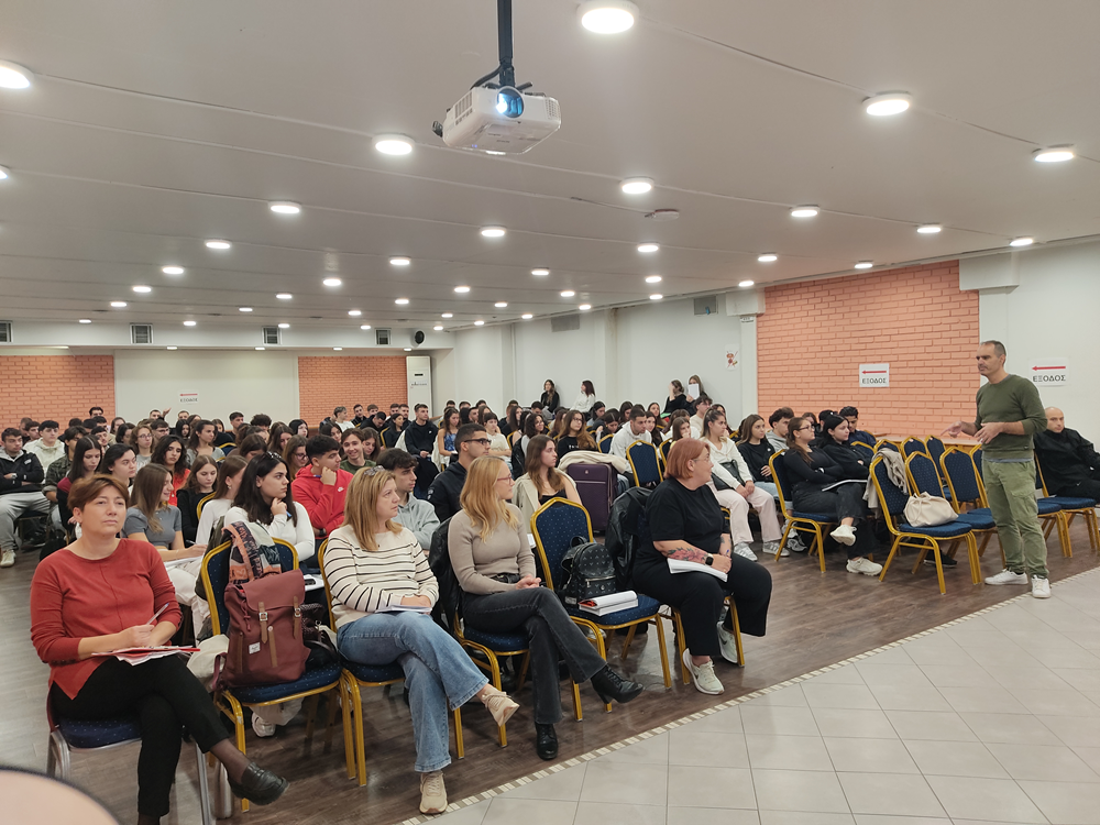 ------------------------------------------------------------------------------------------------------------------- During the Student Talent Scouting Day, Professor Mr. Asimakopoulos made a presentation of the research activities of the Marketing and Management of Business and Organizations (MaMBO) Research Laboratory of the Department of ommt of IHU. The Director of the Research Laboratory, Professor Mr. Asimakopoulos, informed the audience about the laboratory's current research projects, including AISE and SVOVET trying to inspire students and attract new talents in the pools.