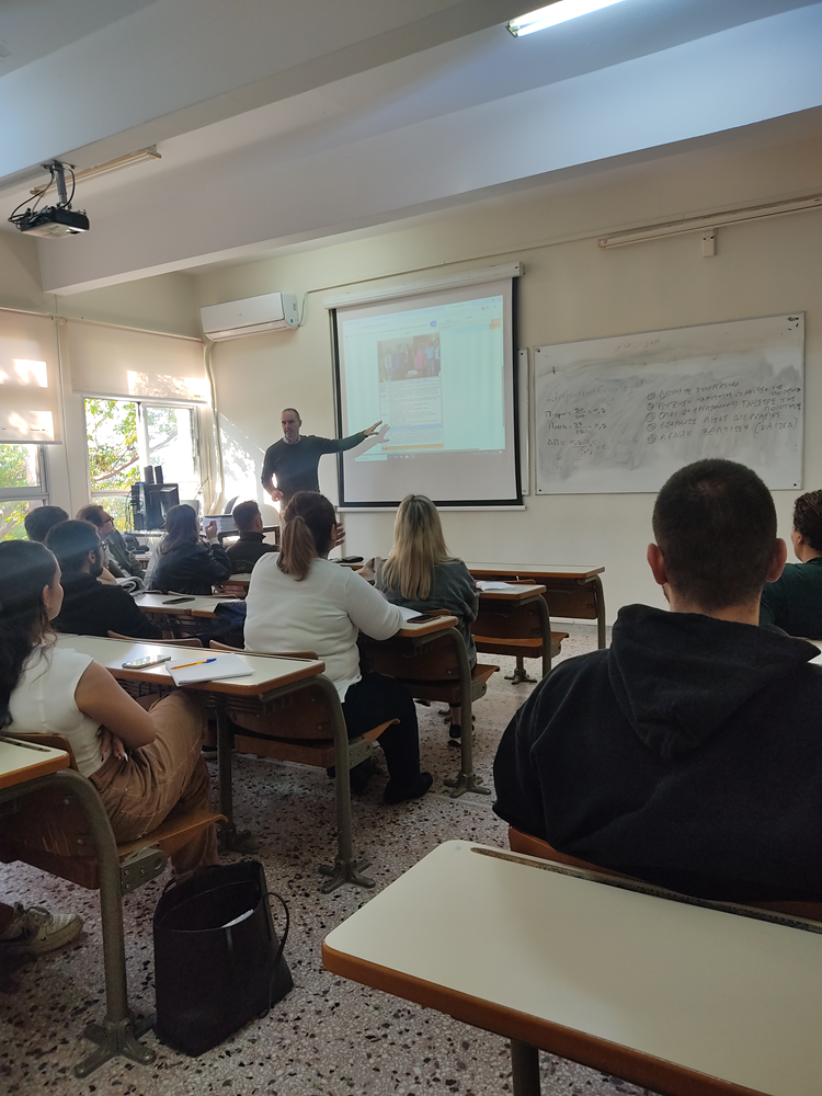 ------------------------------------------------------------------------------------------------------------------- During the Student Talent Scouting Day, Professor Mr. Asimakopoulos made a presentation of the research activities of the Marketing and Management of Business and Organizations (MaMBO) Research Laboratory of the Department of ommt of IHU. The Director of the Research Laboratory, Professor Mr. Asimakopoulos, informed the audience about the laboratory's current research projects, including AISE and SVOVET trying to inspire students and attract new talents in the pools.